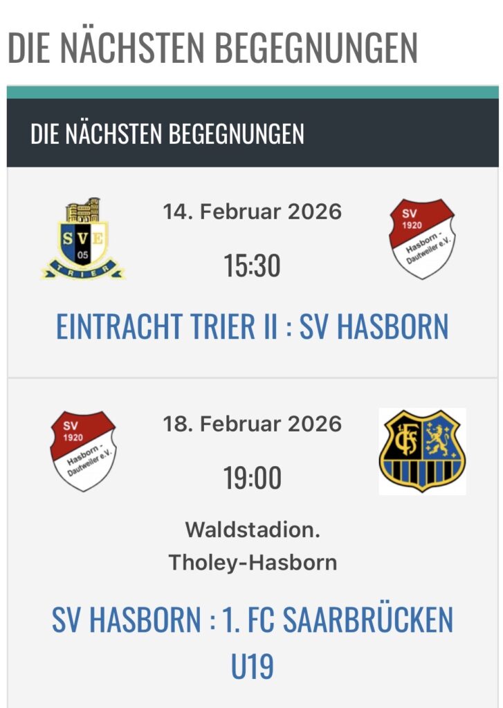 Am heutigen Valentinstag liegt Fussball-Liebe in der Luft. Wir spielen in Trier gegen die Rheinlandliga-Mannschaft der Eintracht aus Trier. Am Aschermittwoch geht es zu Hause gegen die U19 des 1. FC Saarbrücken.
