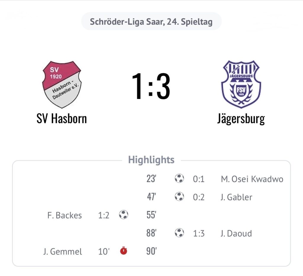 Zum Ende hatten wir nicht mehr den ganz großen Drang zum Tor und so liefen wir in einen Konter, den Jägersburg eiskalt zum 1:3 ausnutzte.